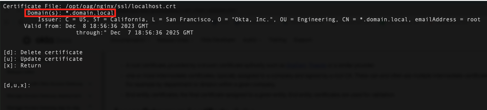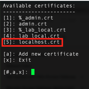- To delete the *.domain.local cert specify the number next to the localhost.crt (5 would be used, as shown in the screenshot).