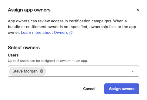 - Select Users or Groups, select applicable owners, and complete the process by selecting the Assign Owners button.