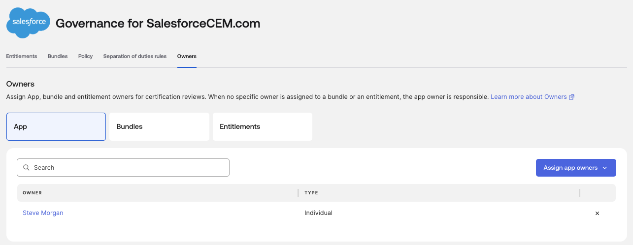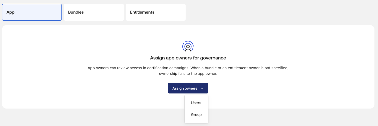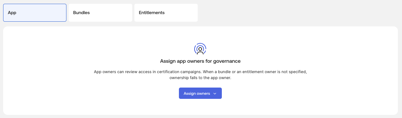 To configure an application, entitlement-value, or entitlement-bundle owner in the UI, perform the following steps: