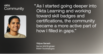 Read about Vidyaa Ganesh, a Senior IAM Engineer at RAAH Technologies. Dive into her journey with Okta, how she uses the community to learn, grow, and collaborate, and her experience with Okta Learning and holding an Okta certification. Read the feature.